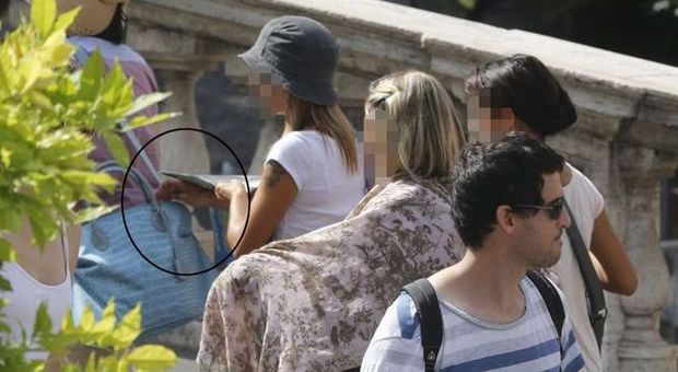 이탈리아 신문에 실린 위의 사진을 보면 오른쪽편 흰 자켓으로 손을 가린 여성이 보이는데, 저 사람이 소매치기예요. 보통 여자 집시들의 수법인데 스카프나 가방으로 손을 가리고 도둑질을 하는데요. 집시의 경우 나이 어린 아이들이라고 해도 전문적인 솜씨이니, 나이 및 성별에 구별말고 조심해야 합니다.